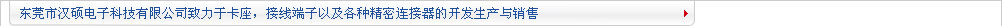 东莞市汉硕电子科技有限公司是一家集产品研发,模具加工,冲压注塑为一体的台资企业,本公司致力于卡座,接线端子以及各种精密连接器的开发生产与销售,产品广泛应用于电脑,通讯,数码,安防等领域。企业拥有先进的模具加工设备,高速精密冲床,注塑成型机器,自动化产品组装及高精度的测试设备。